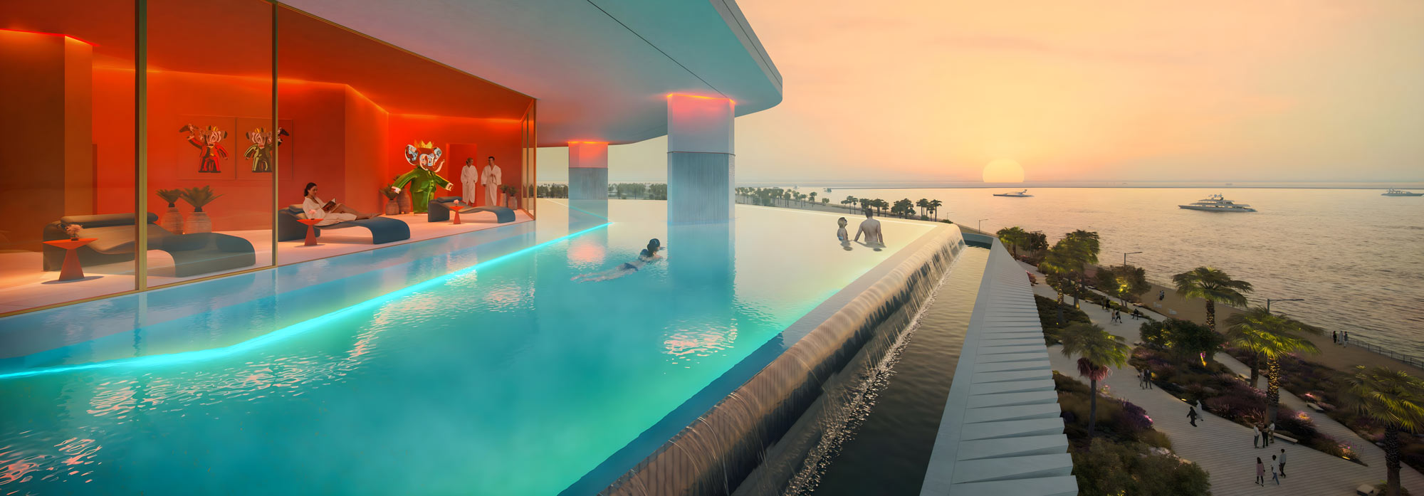 Coral Reef residents can look forward to an abundance of entertainment and leisure offerings within the development itself. These amenities encompass an infinity LED pool, a mural pool, a distinctive lounge set amidst reefs, a fully-equipped gymnasium, a spa featuring a restaurant, an inflatable coral labyrinth, a beachside cinema, and more exciting features in the pipeline.